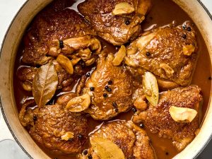 O adobo é provavelmente o prato mais conhecido da gastronomia filipina. Trata-se de uma carne (geralmente frango ou porco) cozinhada em molho de vinagre, molho de soja, alho, folhas de louro e pimenta. O adobo pode variar conforme a região, mas a combinação de ácido e salgado é uma característica que o torna irresistível.